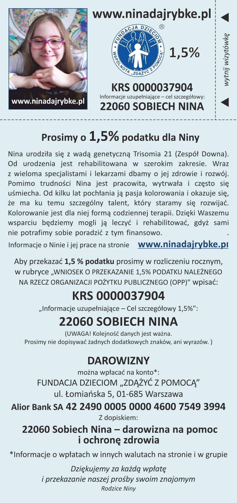 Profil Niny na stronie Fundacji „Zdążyć z pomocą”
